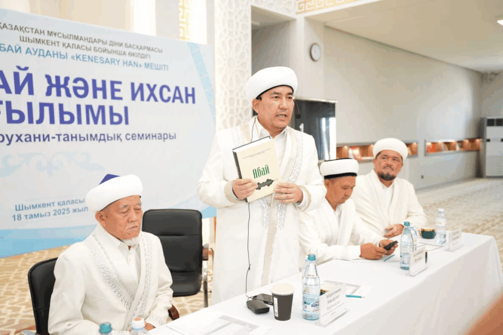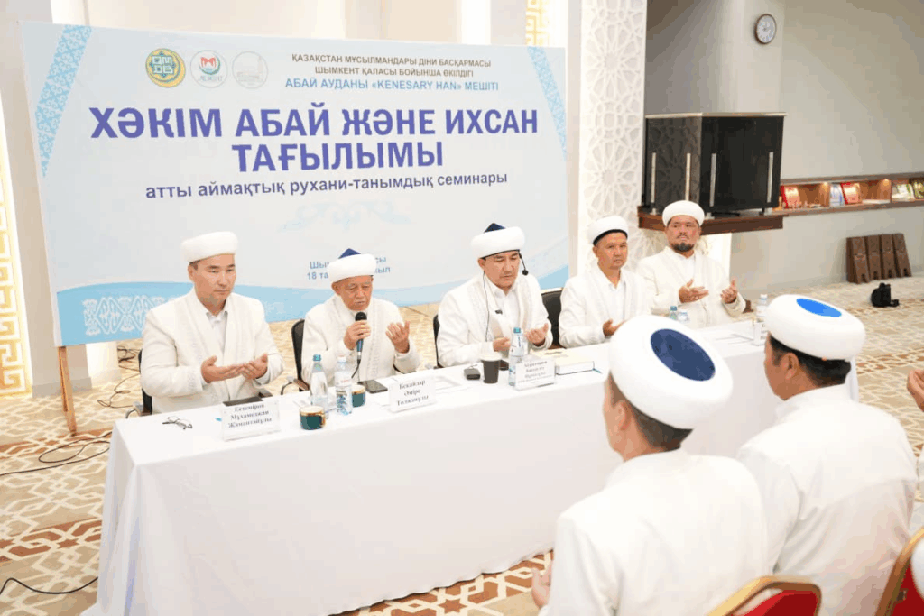 Бүгін ҚМДБ-ның Төрғасы, Бас мүфти Наурызбай қажы Тағанұлының Бағдарлық баяндамасы аясында Хәкім Абай Құнанбайұлының 180 жылдық мерейтойы аясында Шымкент қаласы «Кенесары хан» мешітінде «Хәкім Абай және Ихсан тағылымы» атты рухани танымдық семинары ұйымдастырылды.