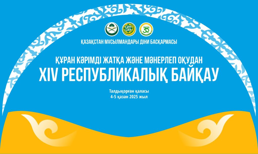Қазақстан мұсылмандары діни басқармасының ұйымдастыруымен Талдықорған қаласында 2025 жылдың 4-5 қазан күндері қасиетті «Құран Кәрімді жатқа және мәнерлеп оқу бойынша ХІV республикалық байқау» өтеді